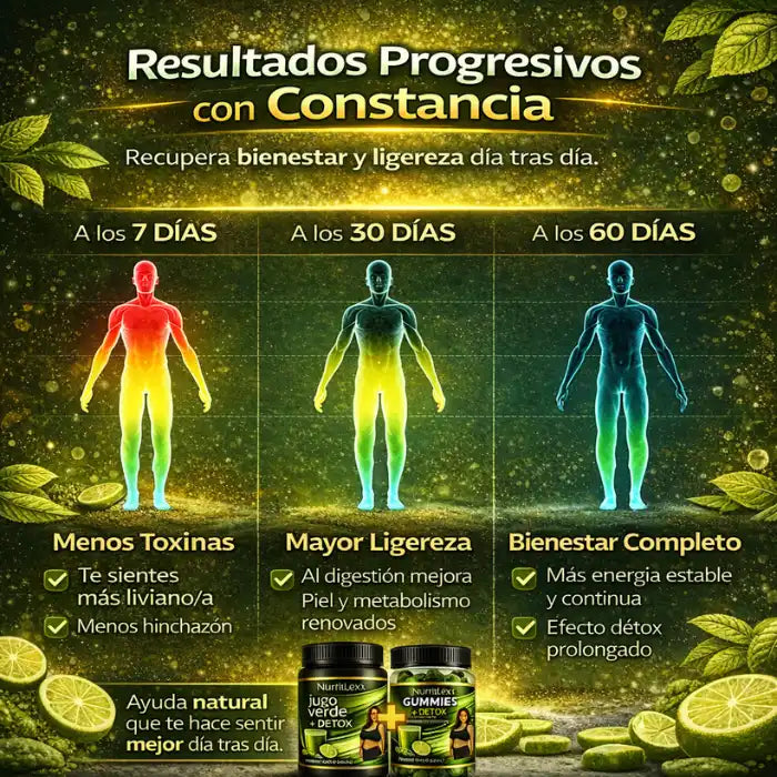 Siempre tuve una relación complicada con la comida. Después de almorzar me sentía muy llena, pesada y sin ganas de hacer nada. Probé tés, batidos y hasta dietas que no logré mantener. Cuando empecé con el combo de jugo verde y gummies detox no esperaba mucho, pero fui constante. Con los días empecé a sentirme más ligera y con mejor energía durante el día. Lo que más me gustó fue que no tuve que cambiar toda mi rutina, simplemente lo integré y ya.