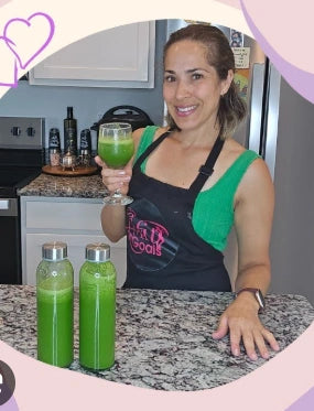 Desde que empecé a usar el jugo verde en la mañana y las gummies en la tarde, me siento más liviana y menos inflamada. Es un buen complemento para la rutina diaria